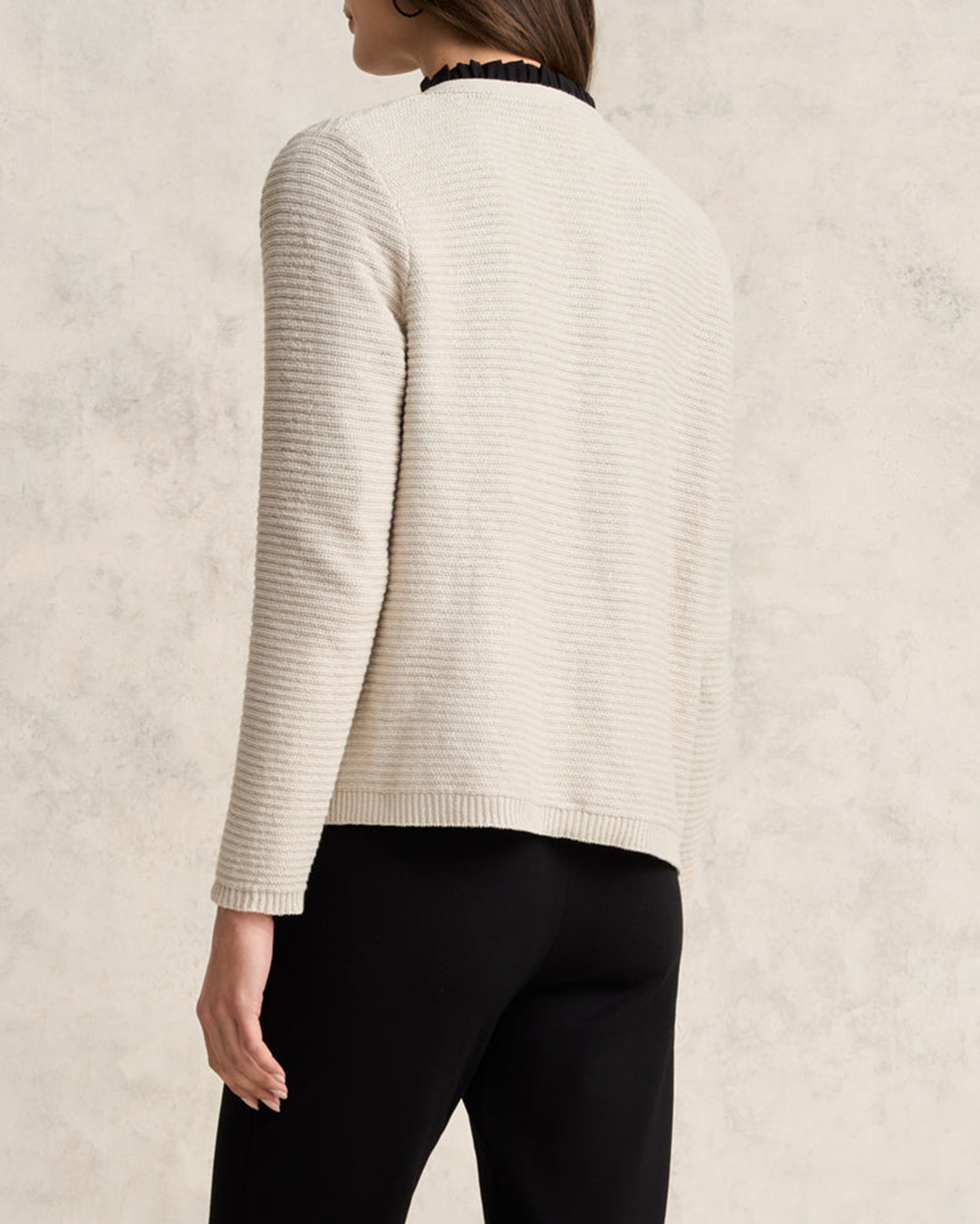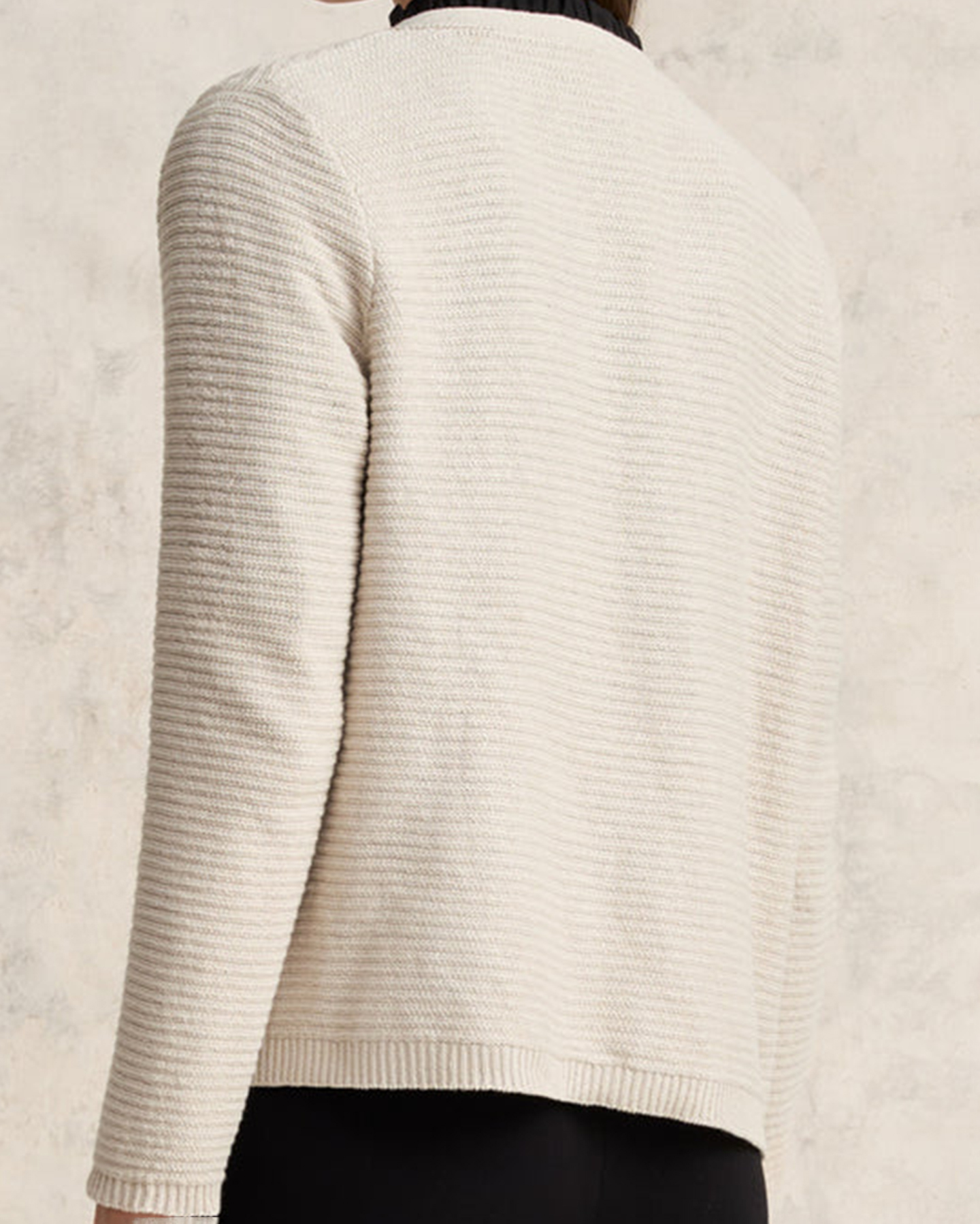 - Ribbed cuff and hem