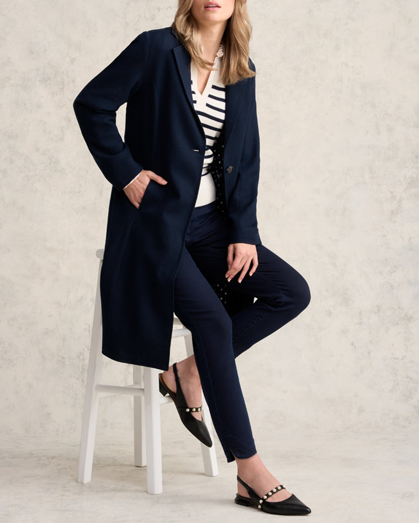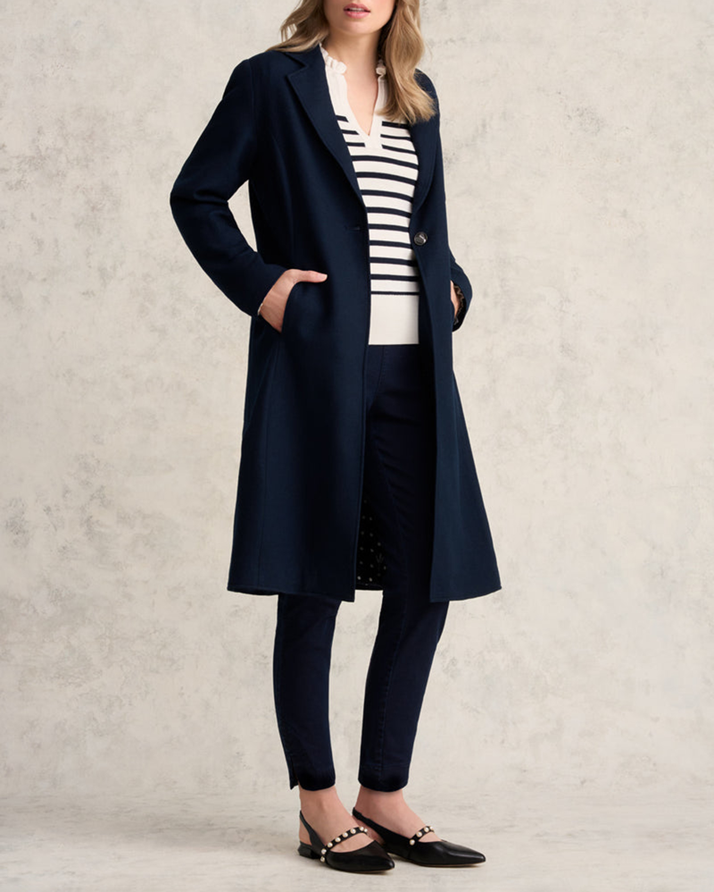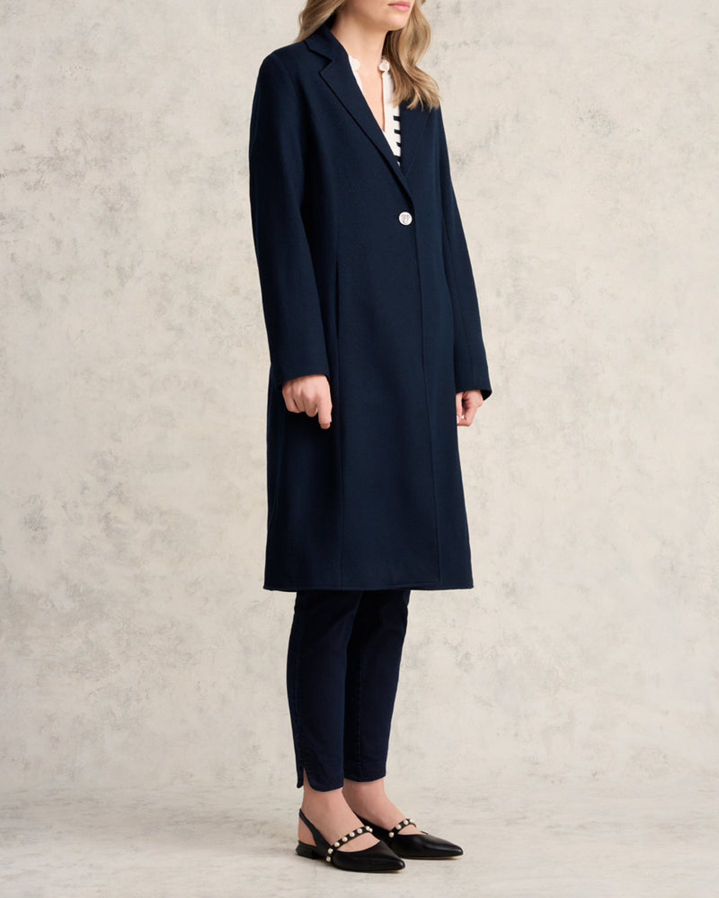 - Single button fastening